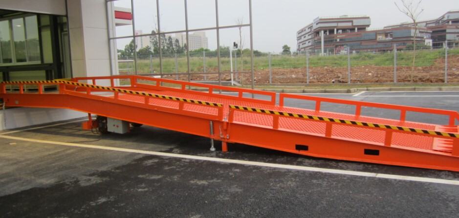 移動式(shì)登車橋常規(gui)型号爲:2000×11000mm,行程(chéng):450mm,承重:10噸,亦可(kě)根據客戶實(shí)際使✏️用需求(qiú)非标訂做。
